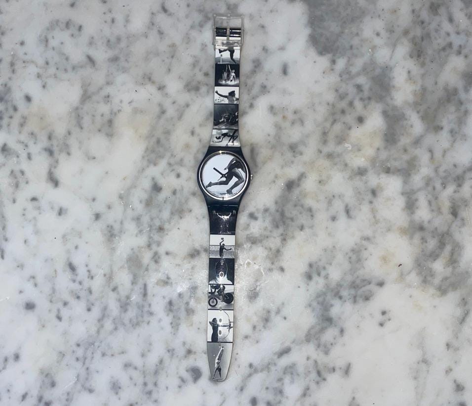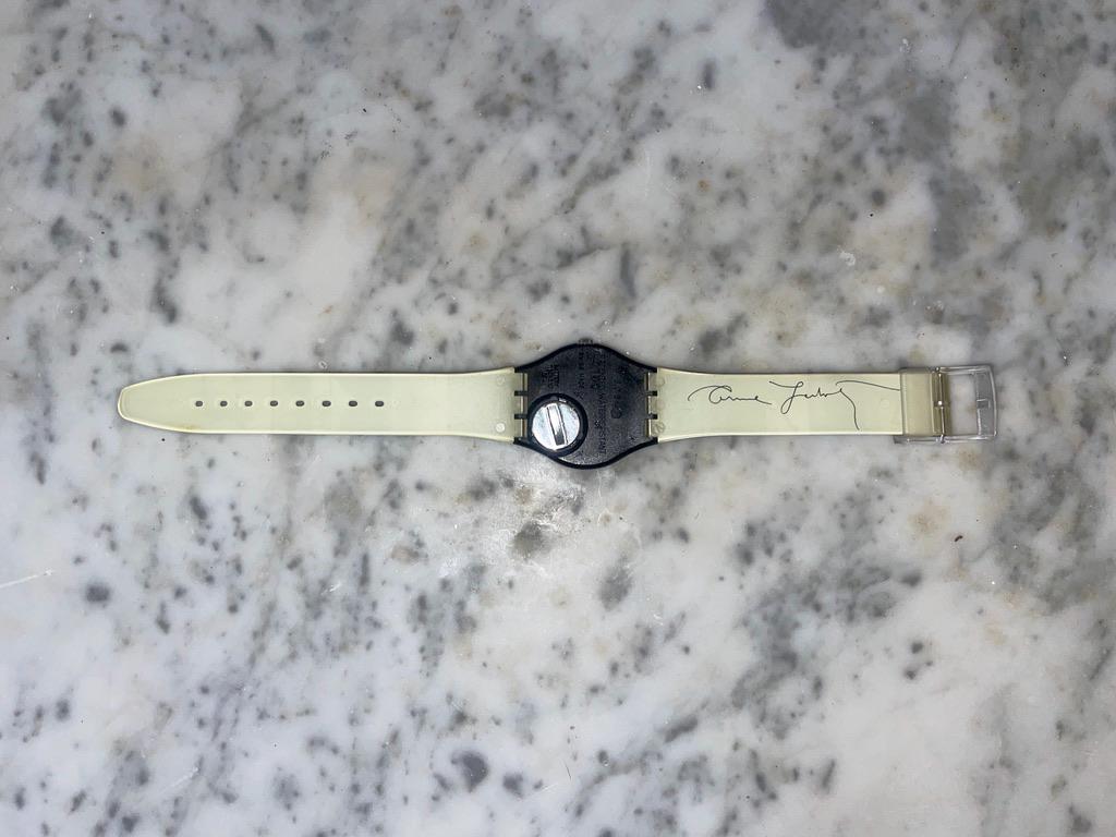 This is a gorgeous estate piece that has never been worn. A must-have for any collector, this vintage Swatch watch is part of a special edition collaboration with legendary photographer Annie Leibovitz.