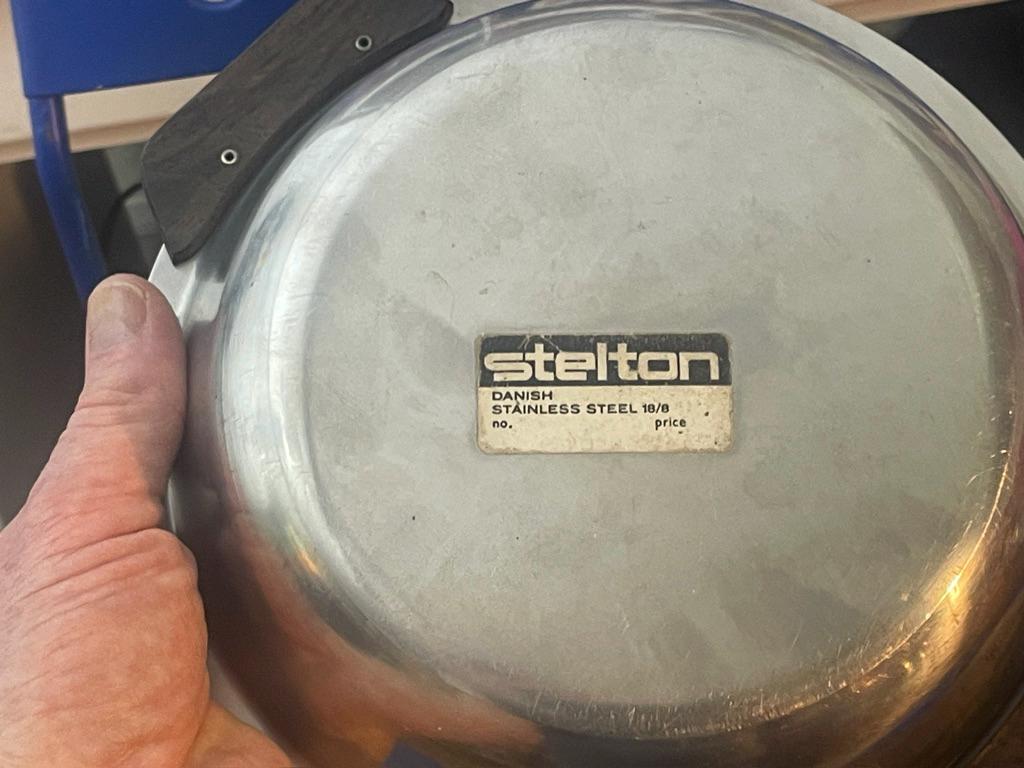 This piece is offered in very good vintage condition, reflecting its high-quality construction and careful use over the decades. It is a complete collector's item, retaining its original Stelton sticker on the underside, confirming its authenticity and heritage.