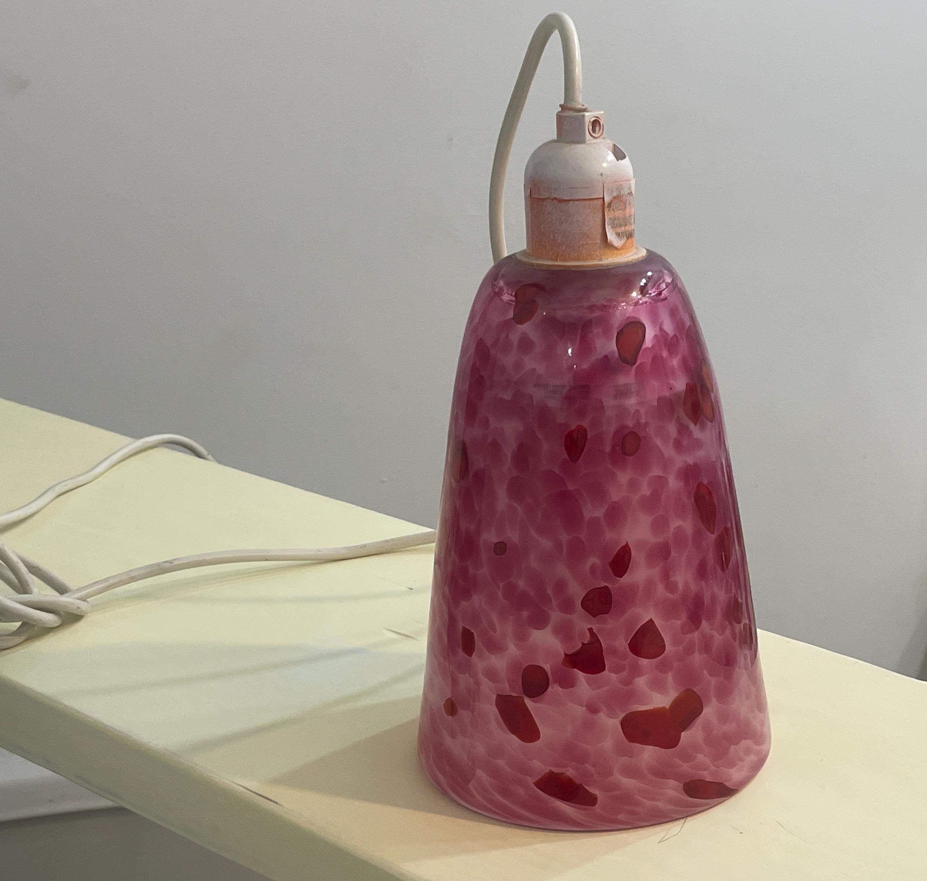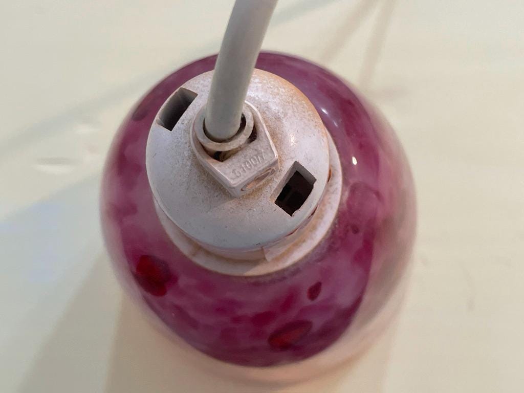 The glass shade is in superb vintage condition. Please note that the fixture requires professional rewiring to meet modern safety standards and for functional installation. This offers the next owner the opportunity to customize the cord color and length to perfectly suit their space.