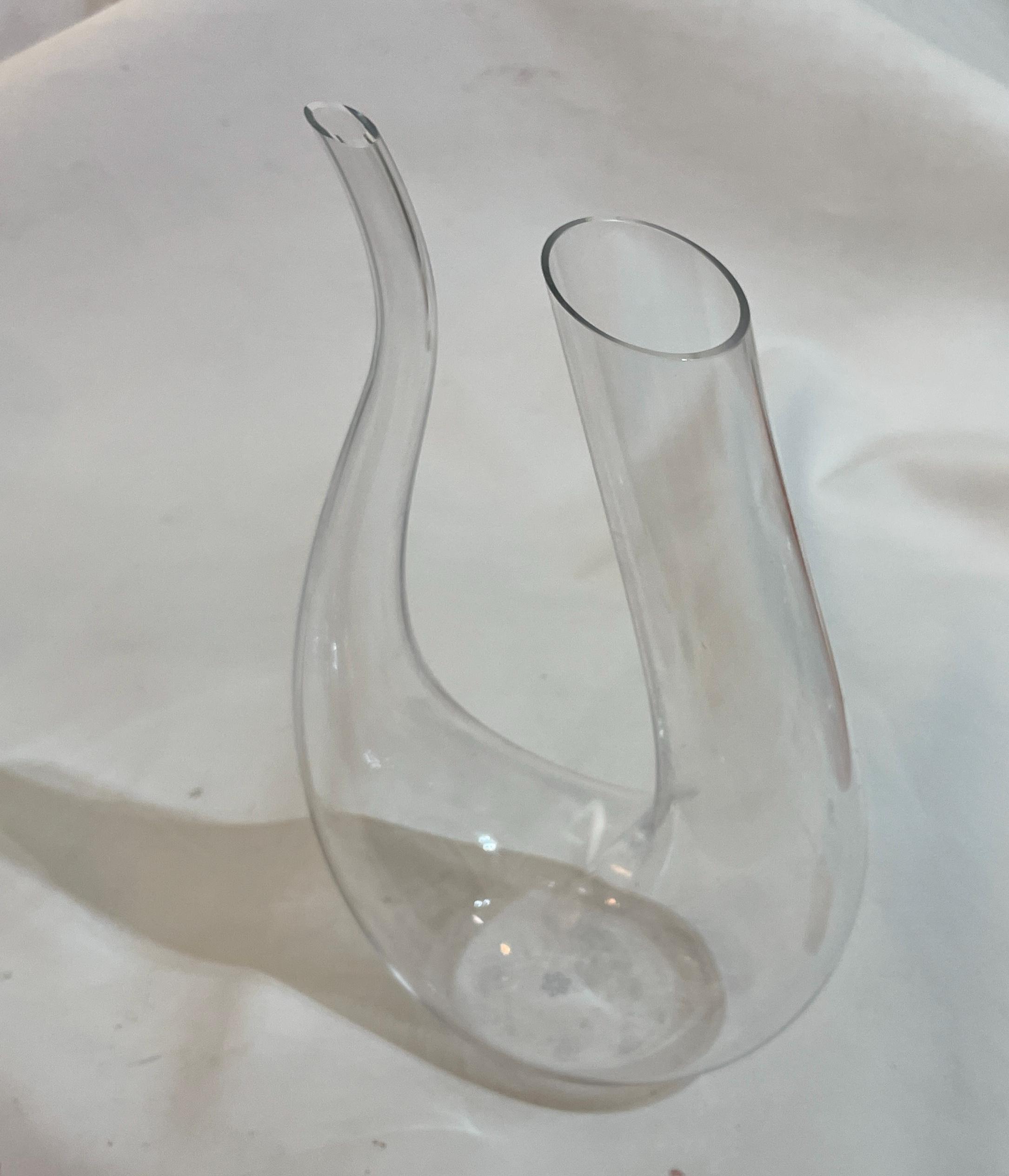 Make a striking statement with this magnificent vintage U-Shaped Wine Decanter, famously known as the "Swan Decanter." This piece is the pinnacle of elegant, functional barware, seamlessly blending sculptural design with the practical needs of the wine enthusiast.