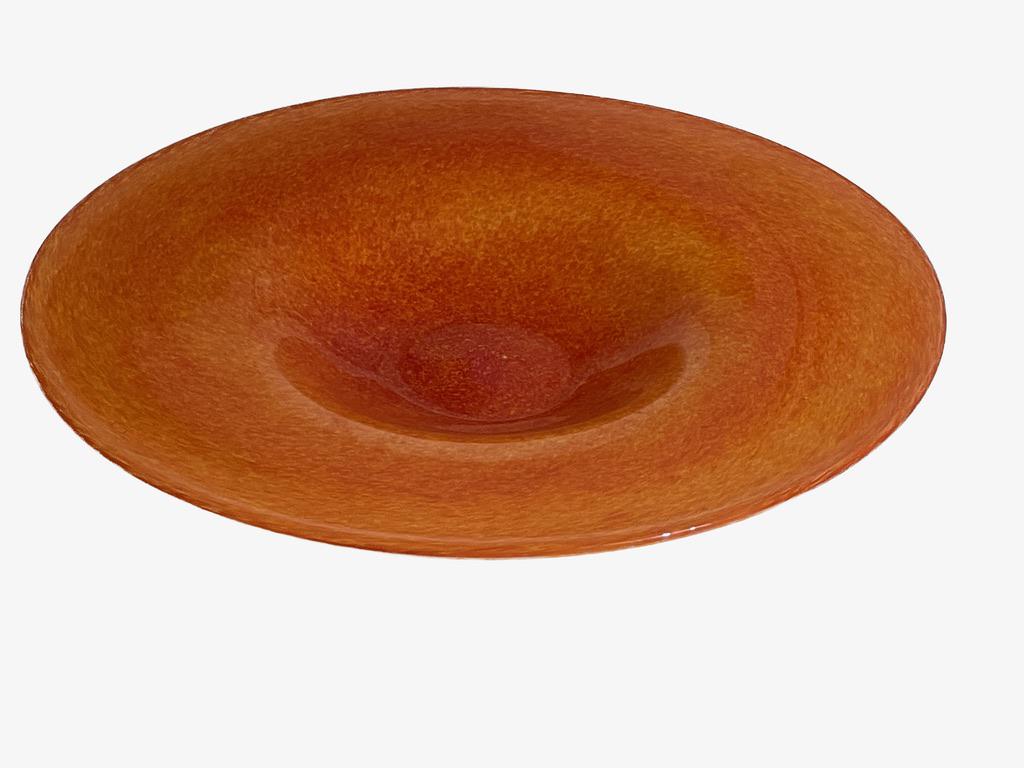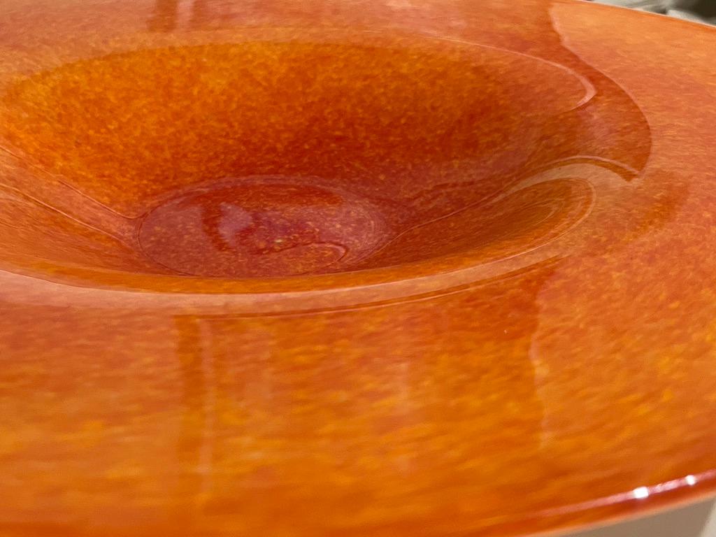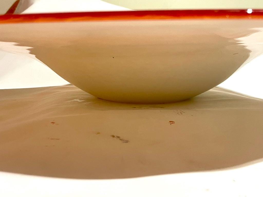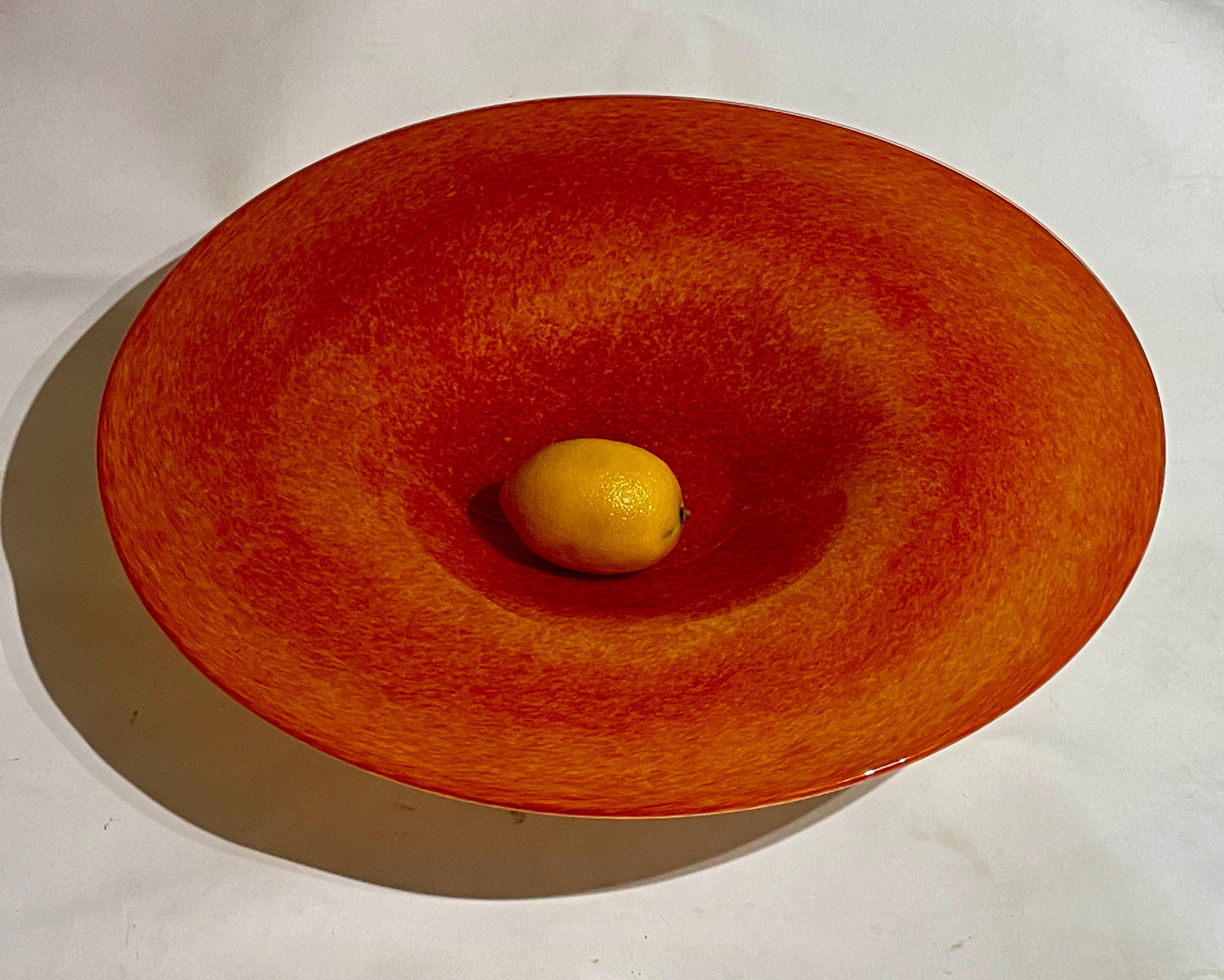 Cased Glass Technique: This piece is crafted using the premium cased glass technique, where a thick layer of clear glass encases the vibrant interior colors. This technique gives the bowl its significant weight and achieves incredible depth and luminosity when viewed in light.