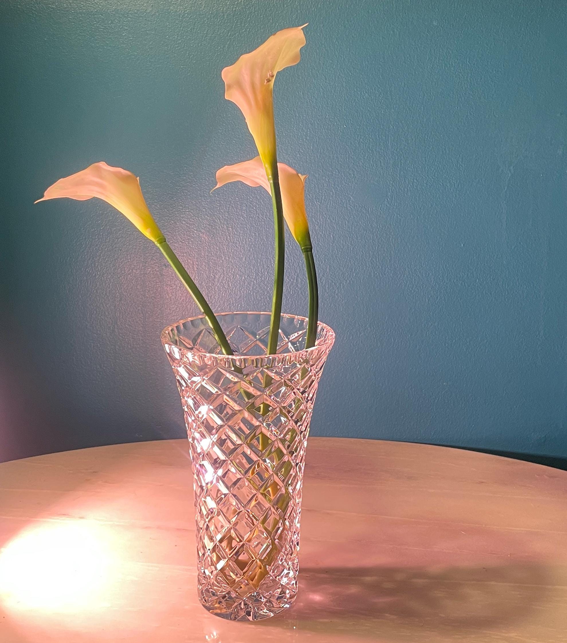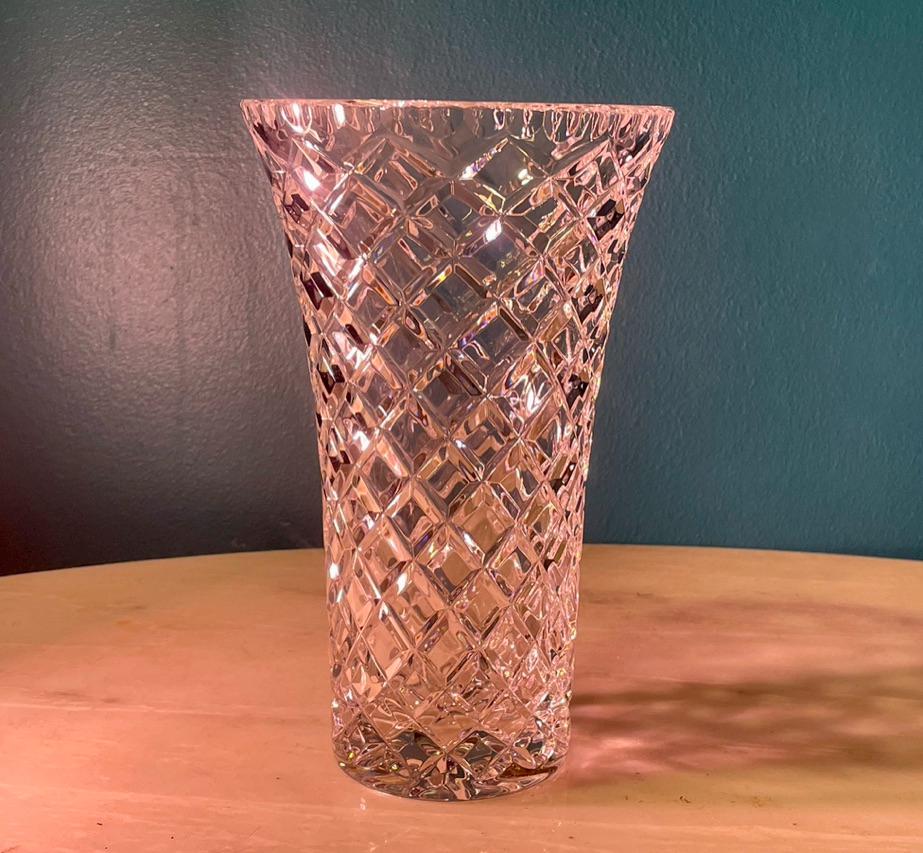 Substantial Weight: The vase is notably heavy and stable, a hallmark of fine vintage crystal, making it ideal for large bouquets without risk of tipping.