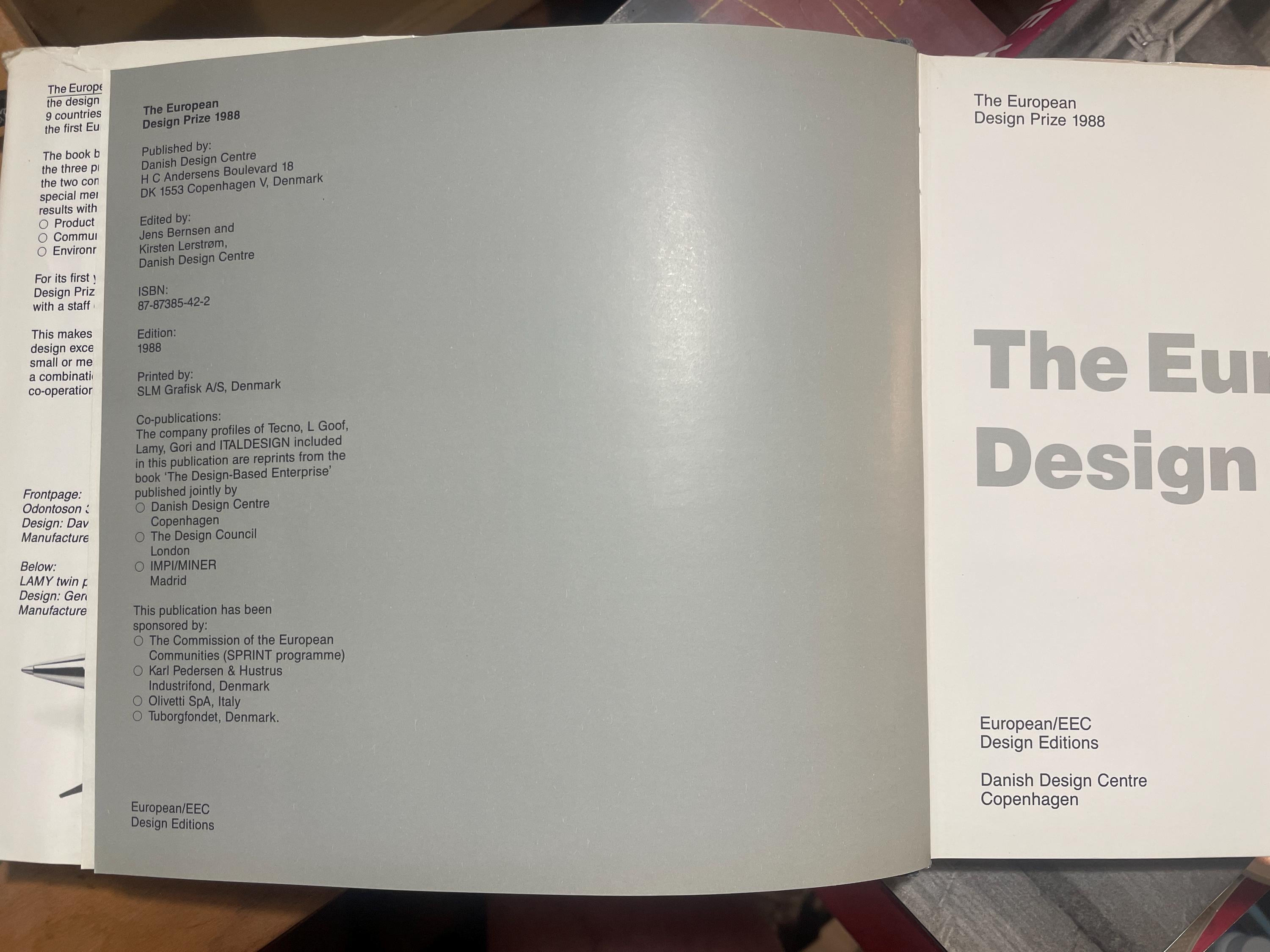 An essential document for design history, this is the official catalog for the inaugural European Design Prize presented in 1988.