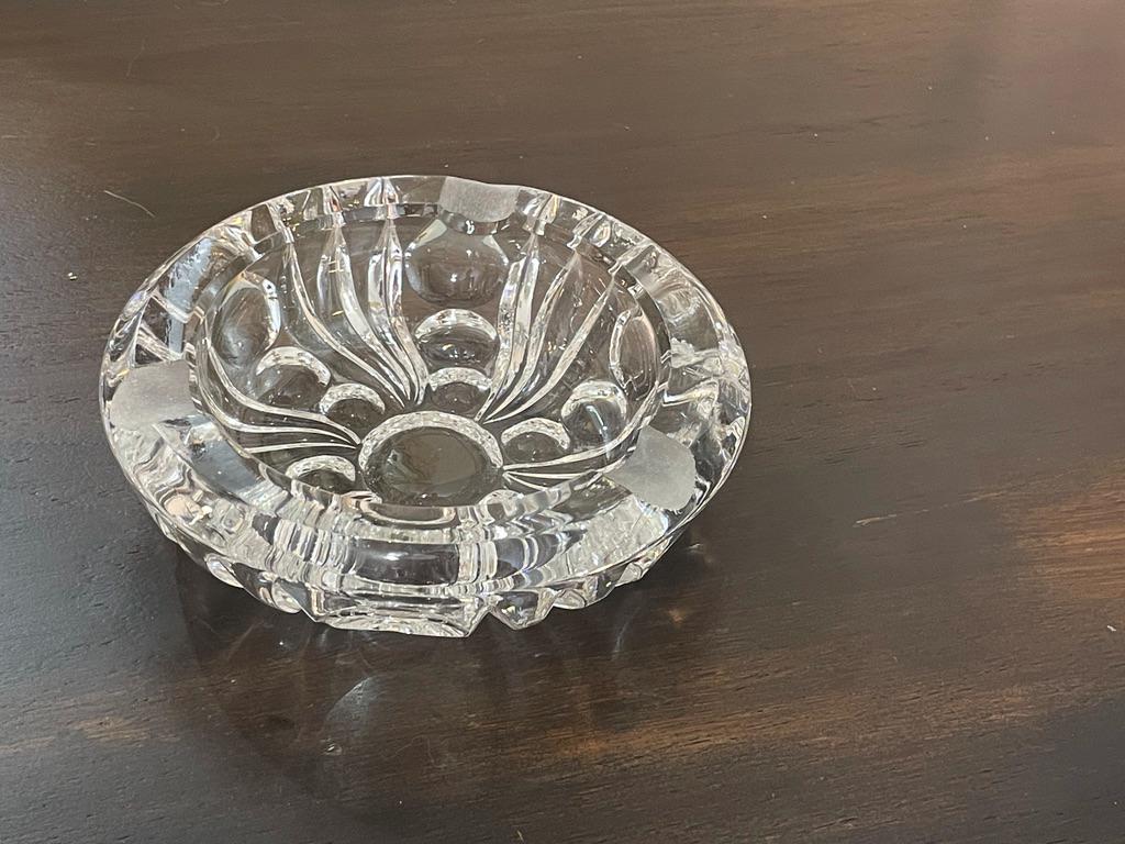 Originally designed as a personal cigarette ashtray (it features the characteristic notches), its size and clarity make it perfectly suited for modern use as: