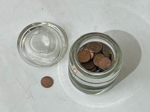 Standing at a compact 4.25 inches tall, this versatile jar is a perfect catch-all for small treasures—jewelry, cotton balls, desktop trinkets, or fine candy. It's a marvelous accent piece for anyone who appreciates fine design and mid-century craftsmanship.
