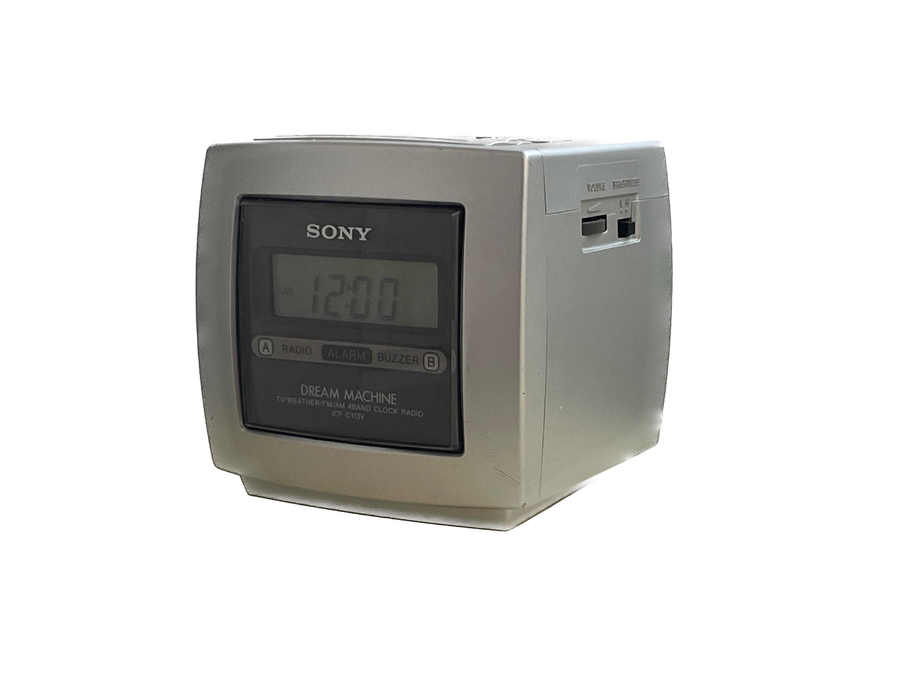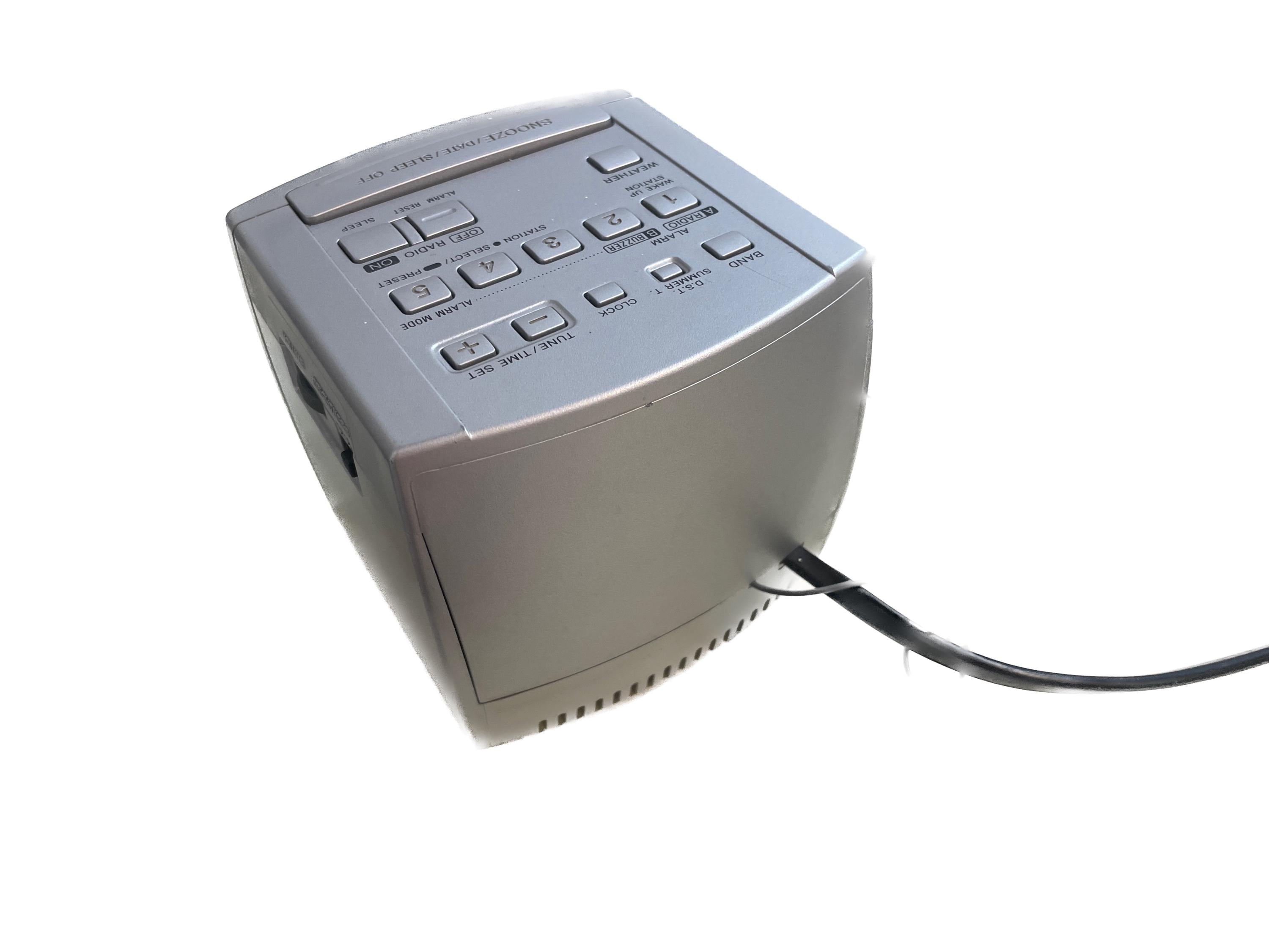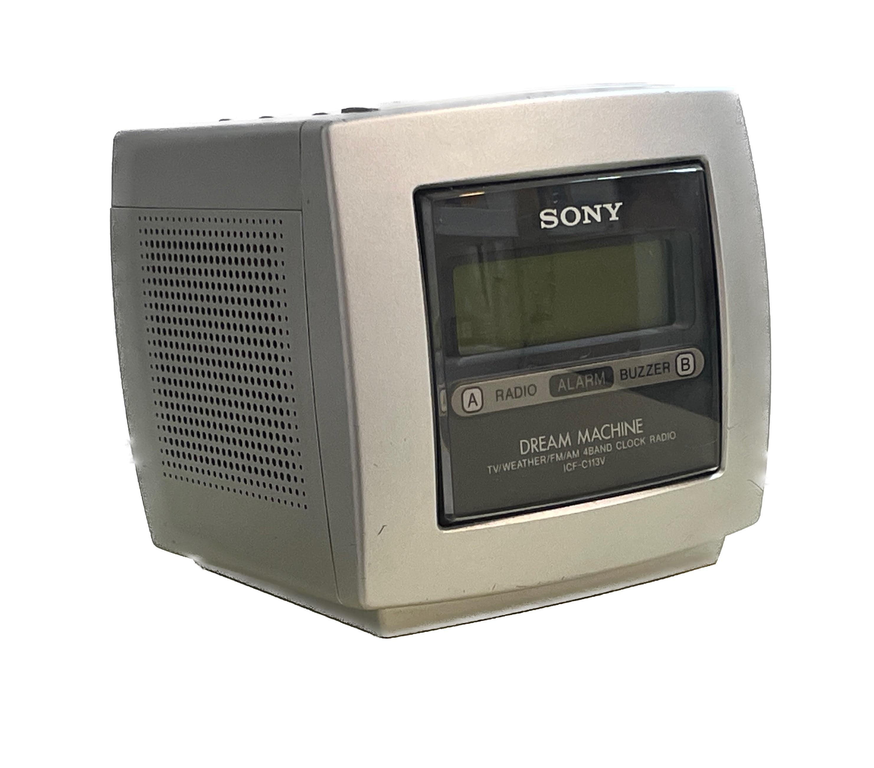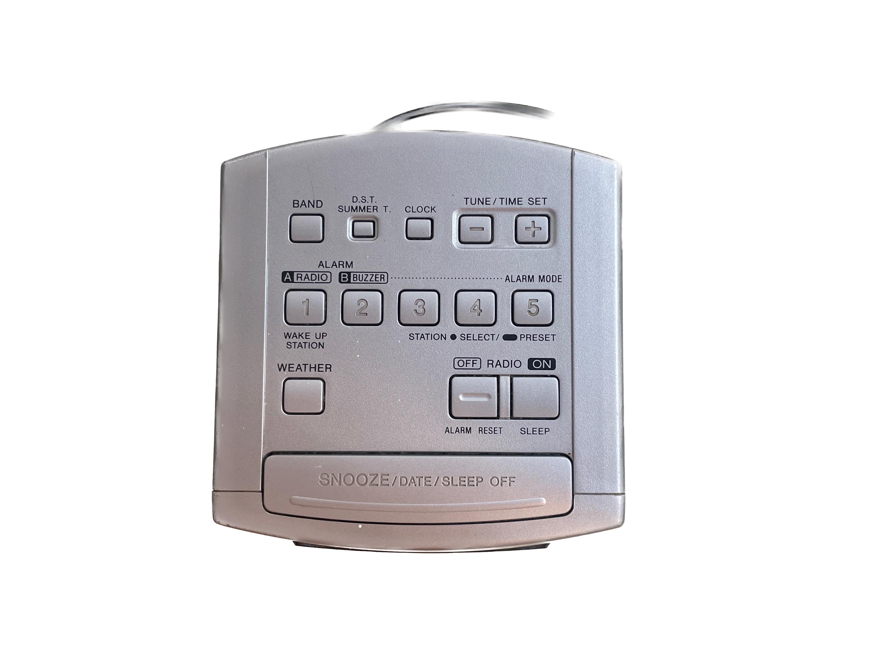 This isn't just a clock—it's a piece of late 90s tech nostalgia! The ICF-C113V model is particularly special because it features a 4-band radio, including VHF TV Audio and the NOAA Weather Band, along with standard AM/FM.