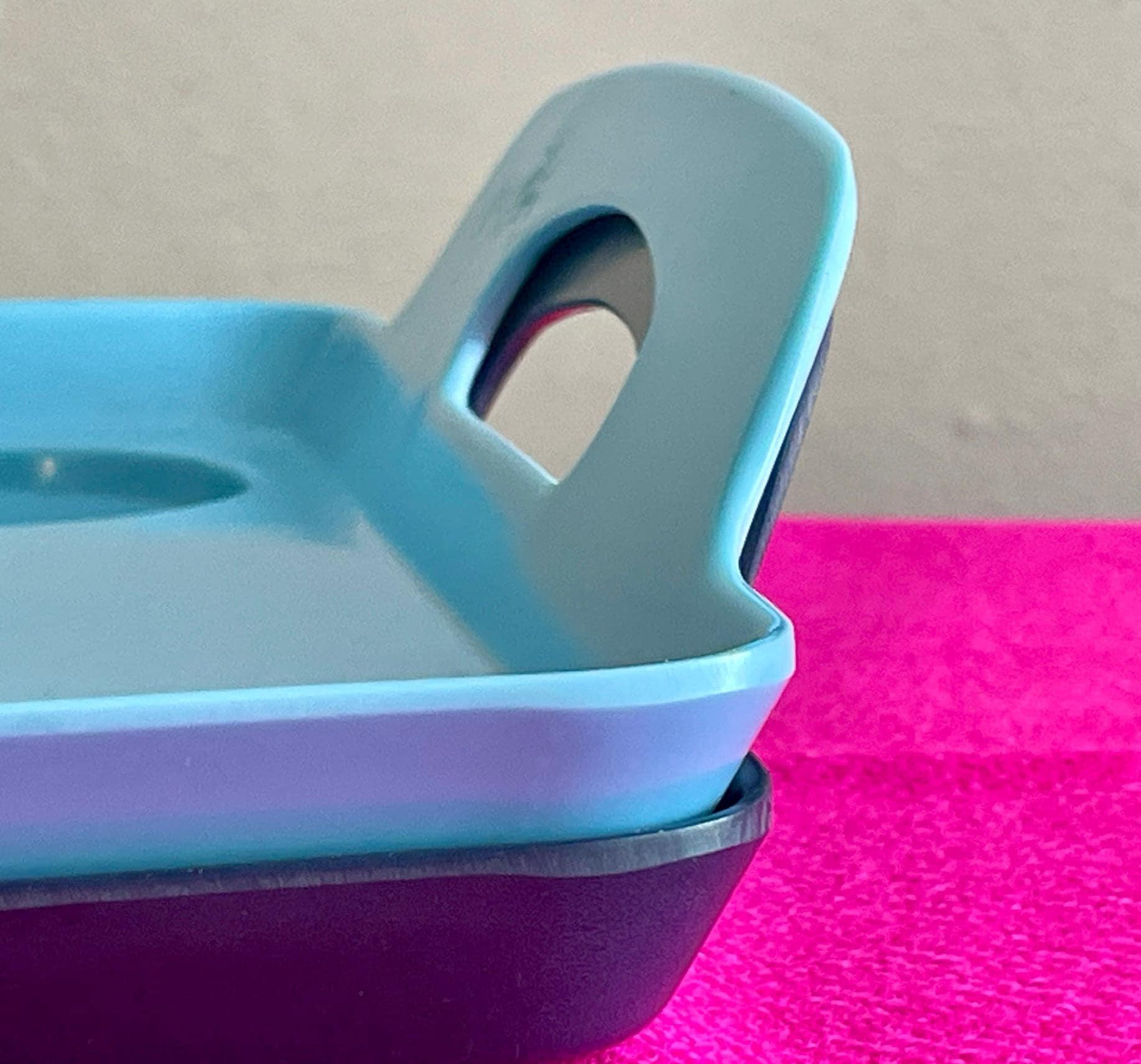 The color pairing is particularly striking: one tray in a soft Powder Blue and the other in a rich Chocolate Brown. This unexpected, sophisticated tone-on-tone combination makes them versatile accents for diverse styles, from retro Americana to contemporary minimalist or coastal decor.