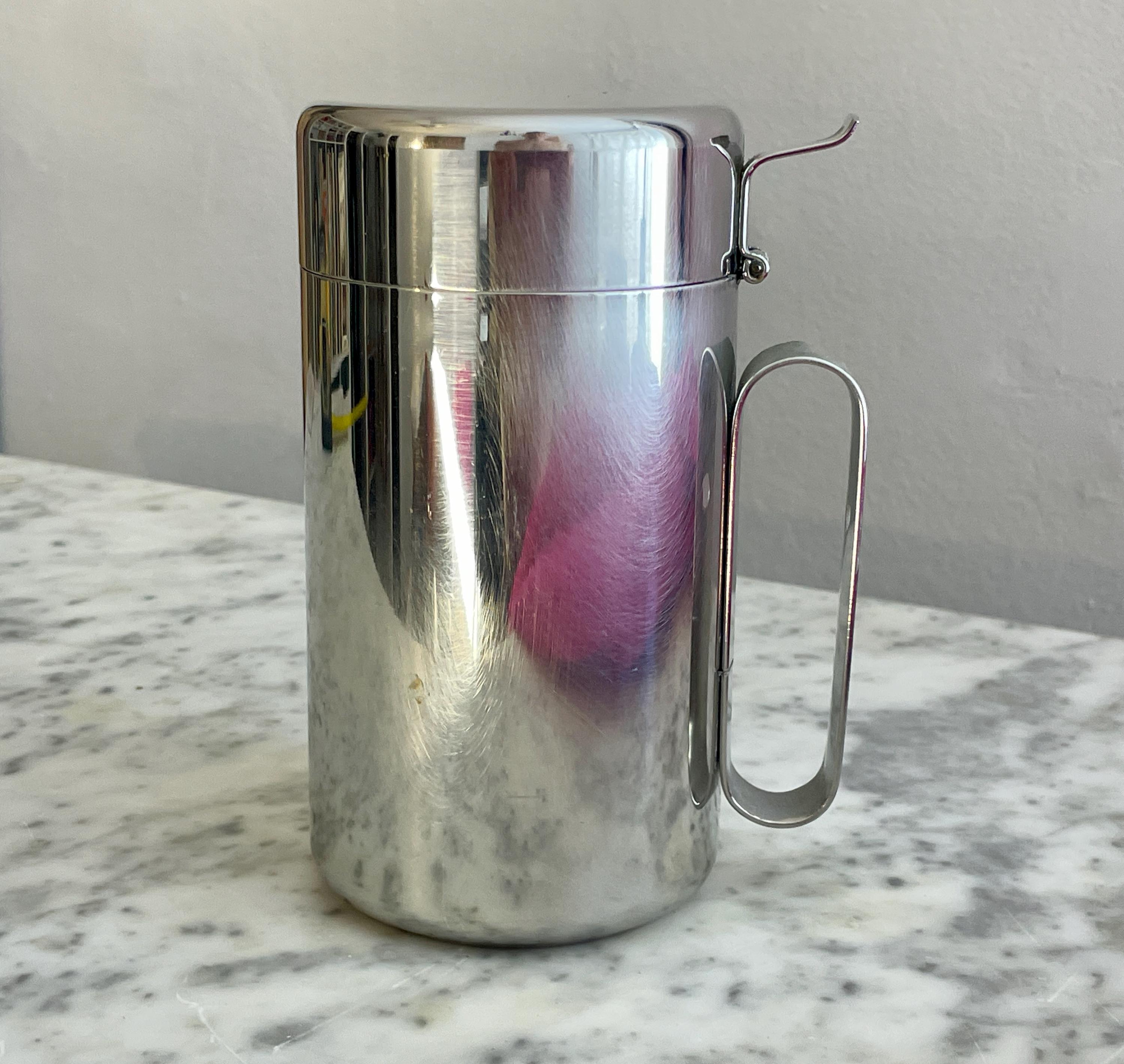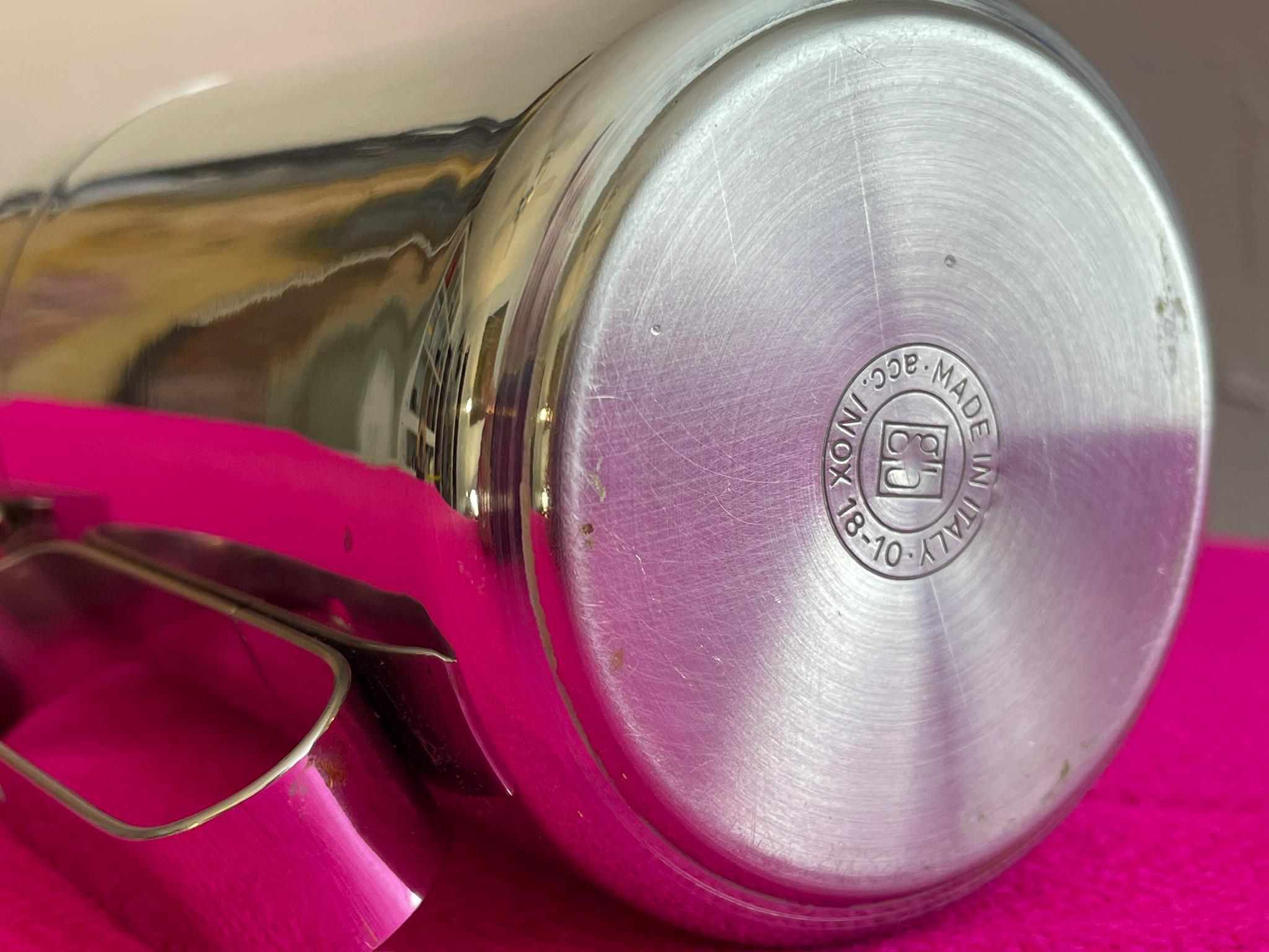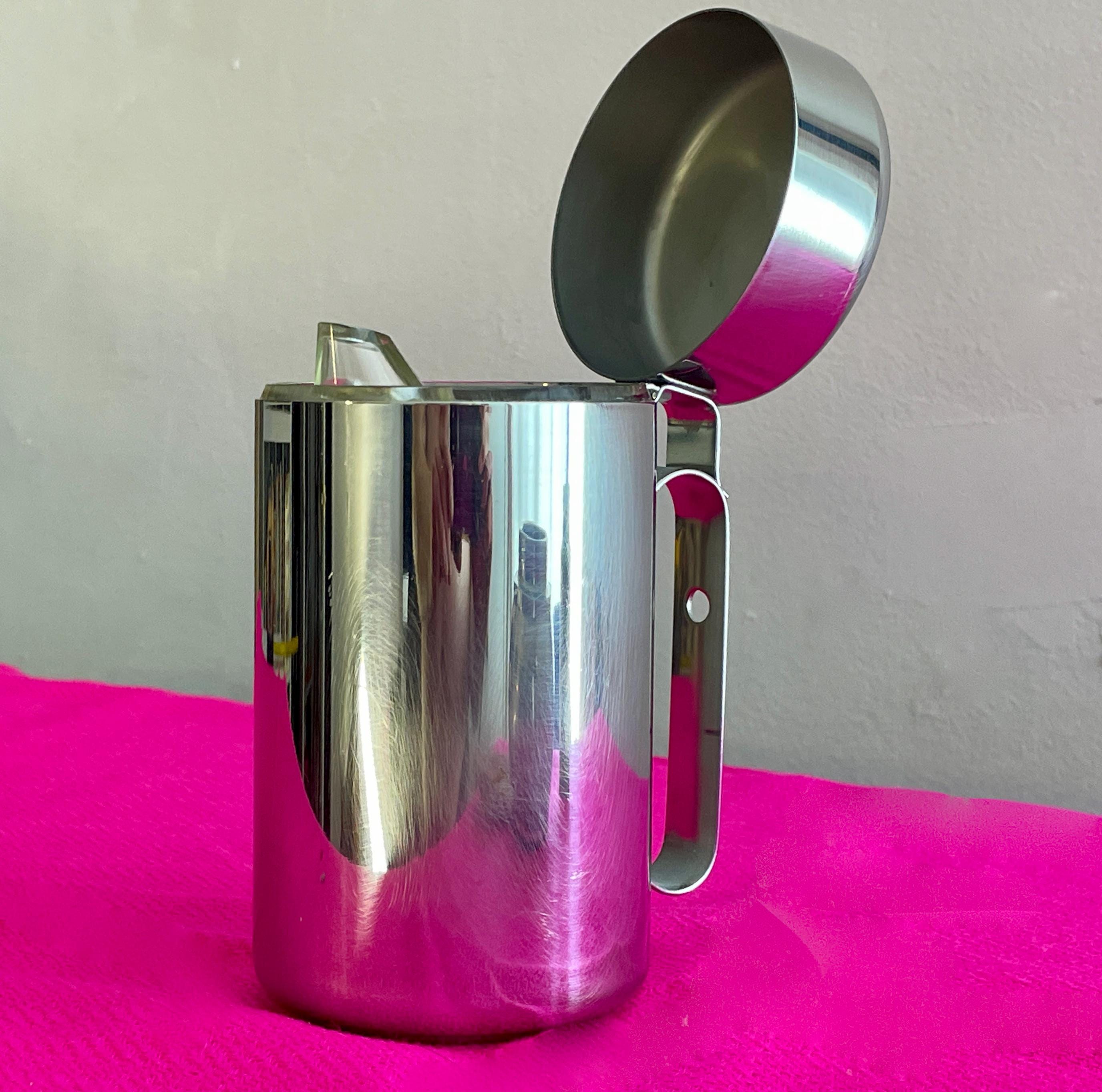 Presenting a timeless piece of Italian Mid-Century Modern (MCM) metalware. This elegant, cylindrical Pouring Jug or Creamer embodies the "less is more" philosophy, achieving striking design through absolute simplicity and superb material quality.