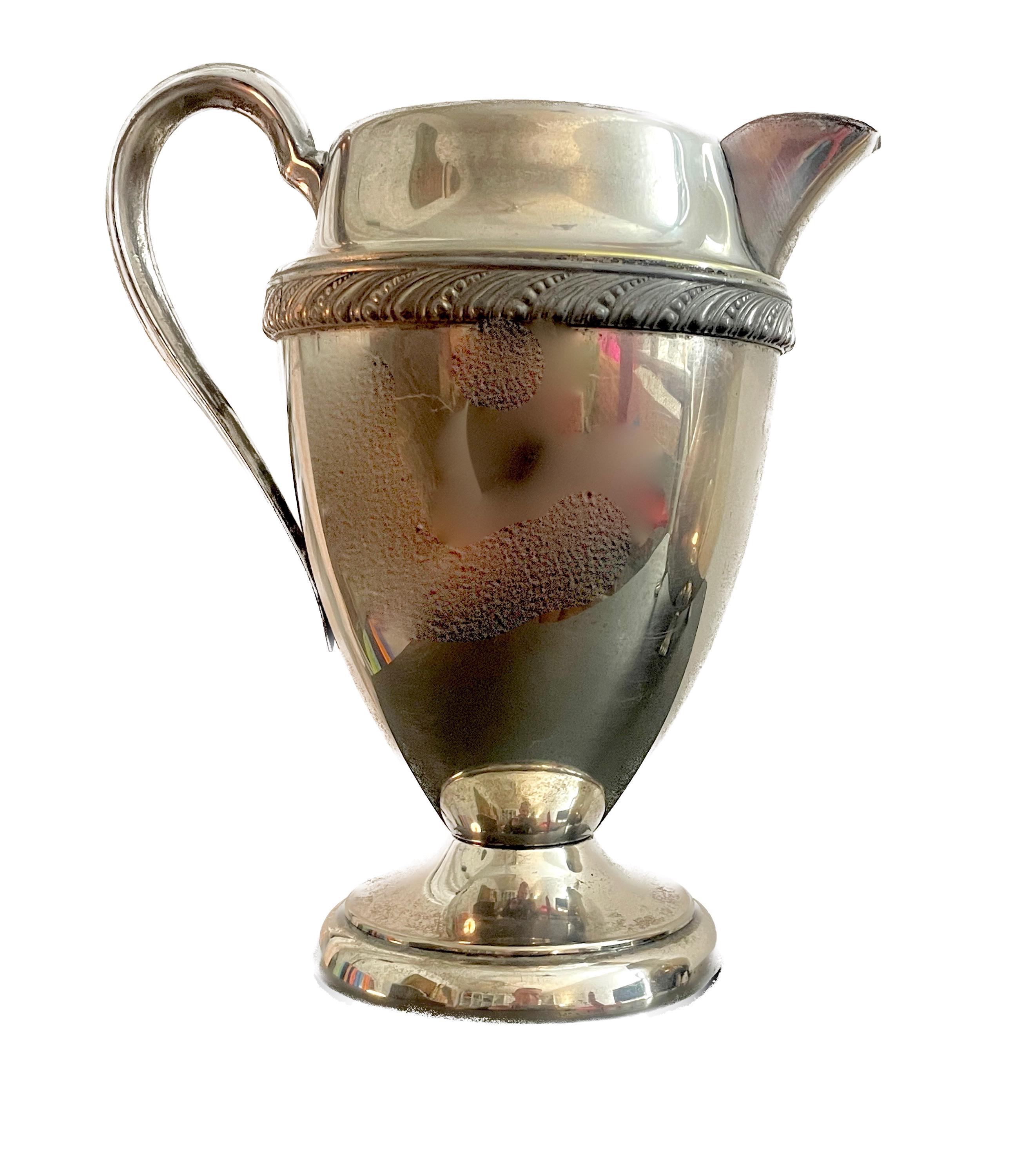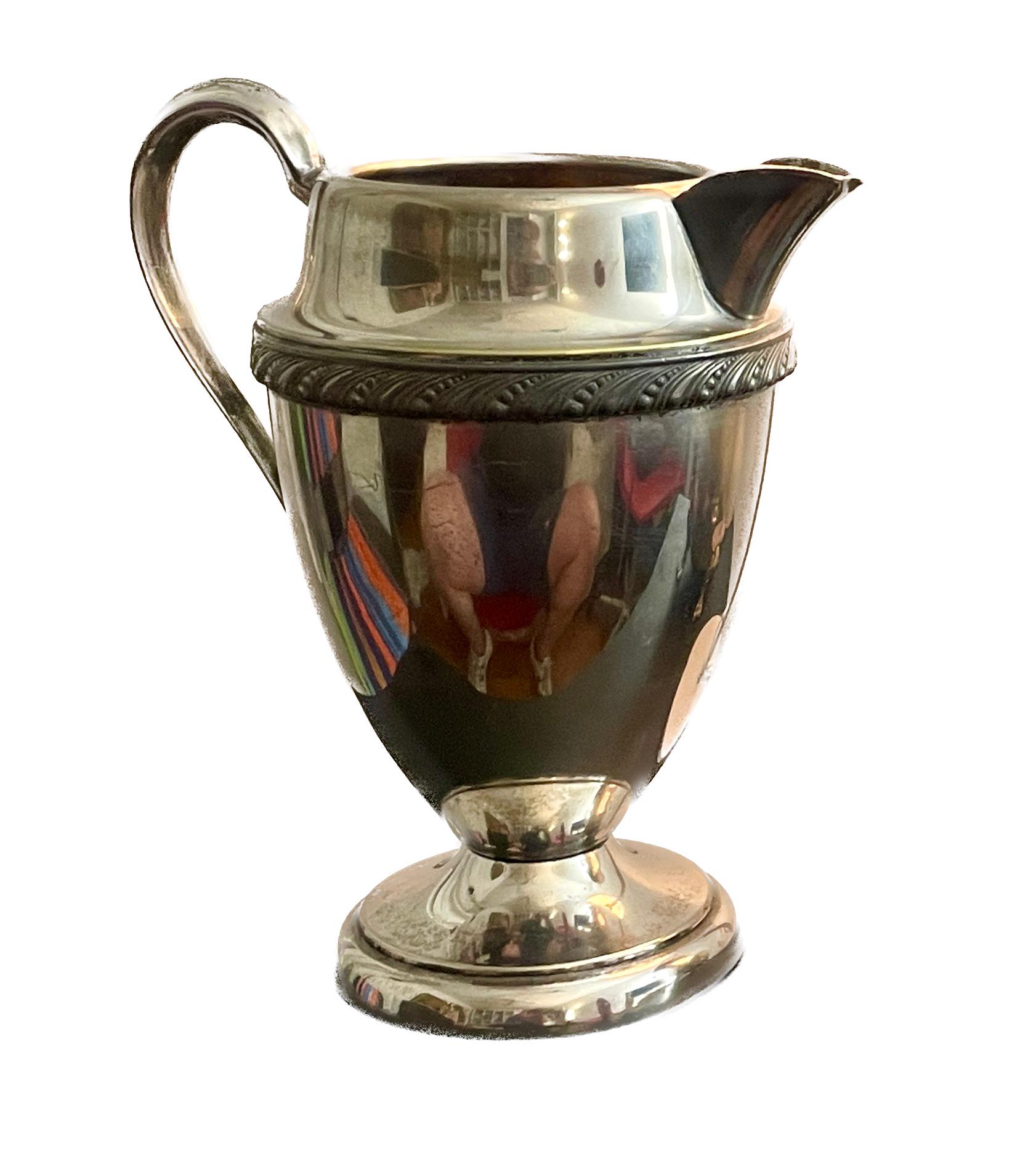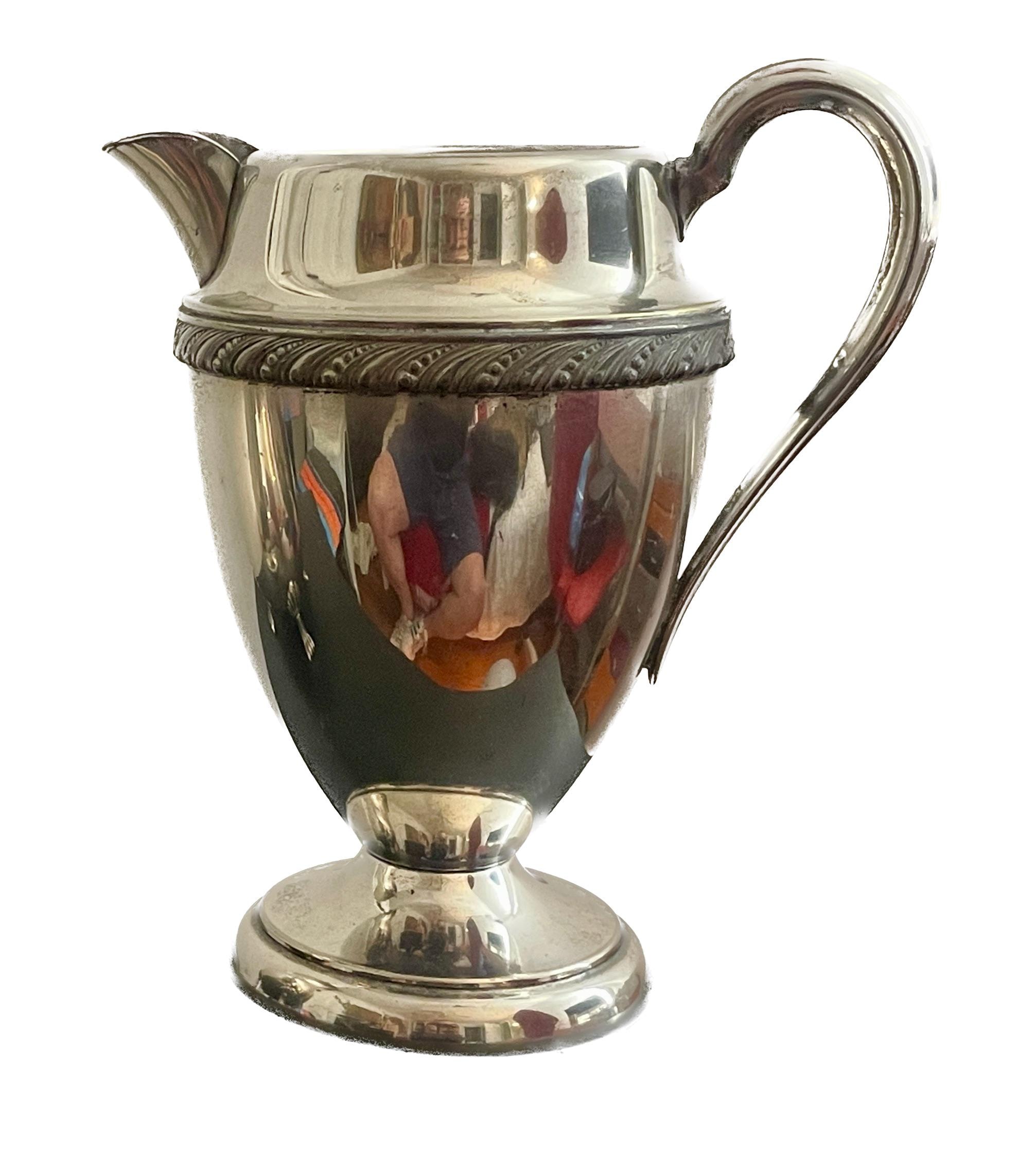 Presenting an elegant Antique Water Pitcher crafted in the highly collectible Silver-on-Copper tradition. This piece features a classic Late Victorian / Edwardian Revival design, characterized by a gracefully tapered urn-shaped body resting upon a formal pedestal foot.