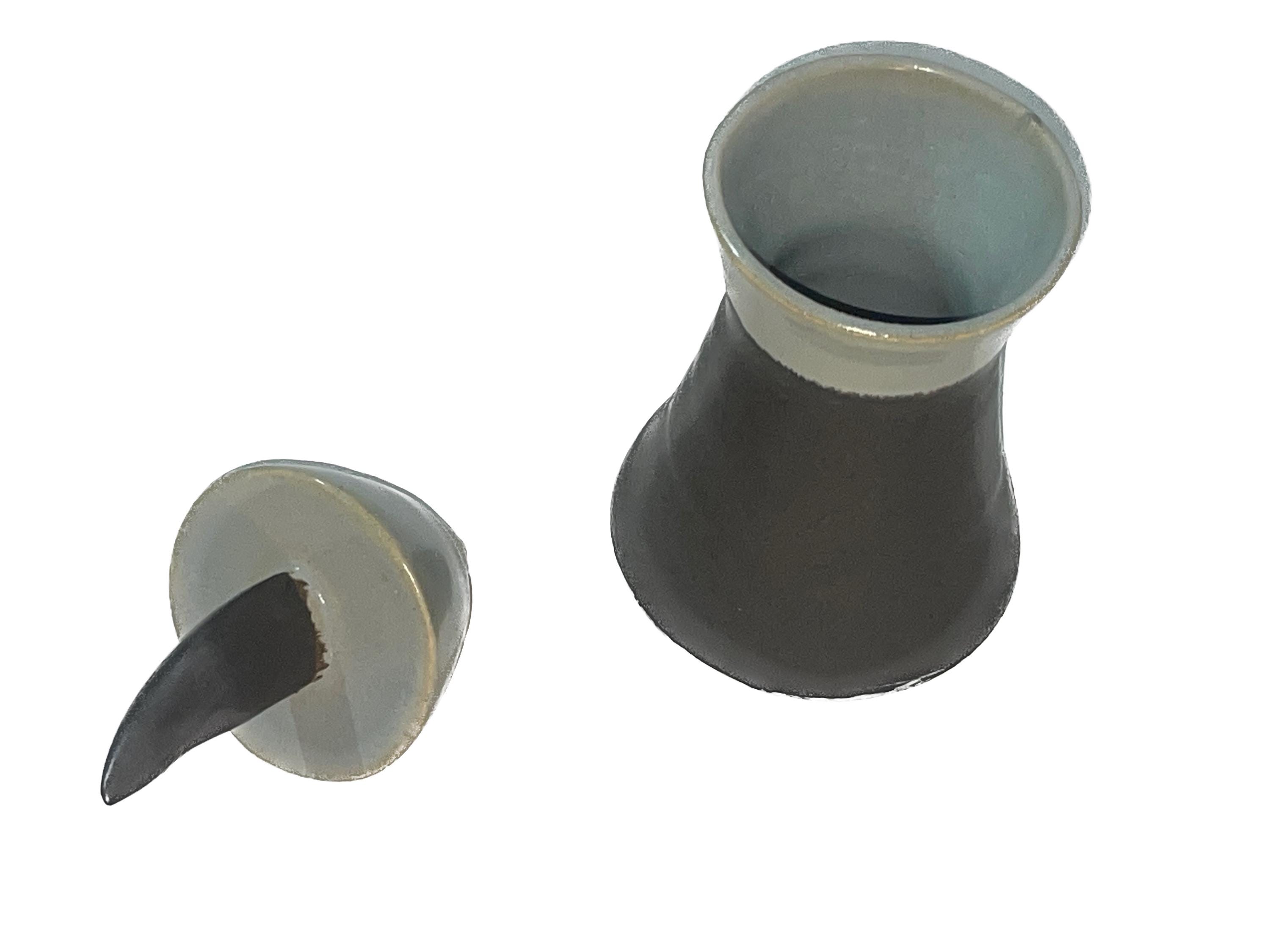 Presenting an exquisite piece of modern studio pottery, this lidded vessel is a superb example of Japandi (Japanese/Scandinavian) minimalism and Wabi-Sabi aesthetics. It captures elegance through simple form and natural color.