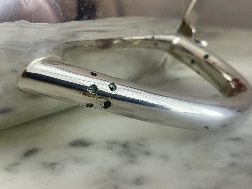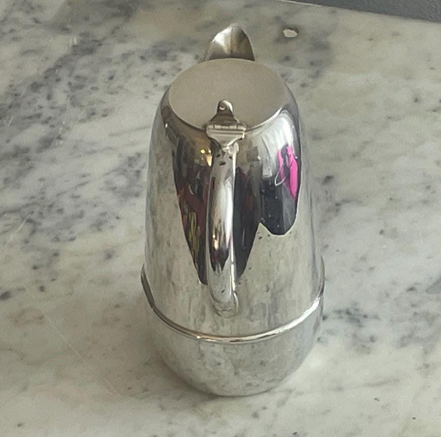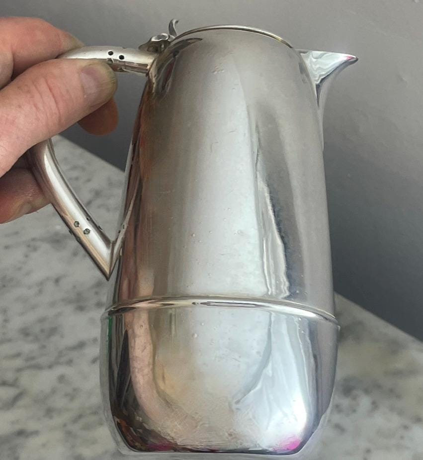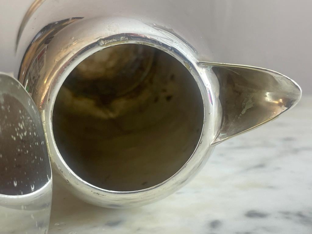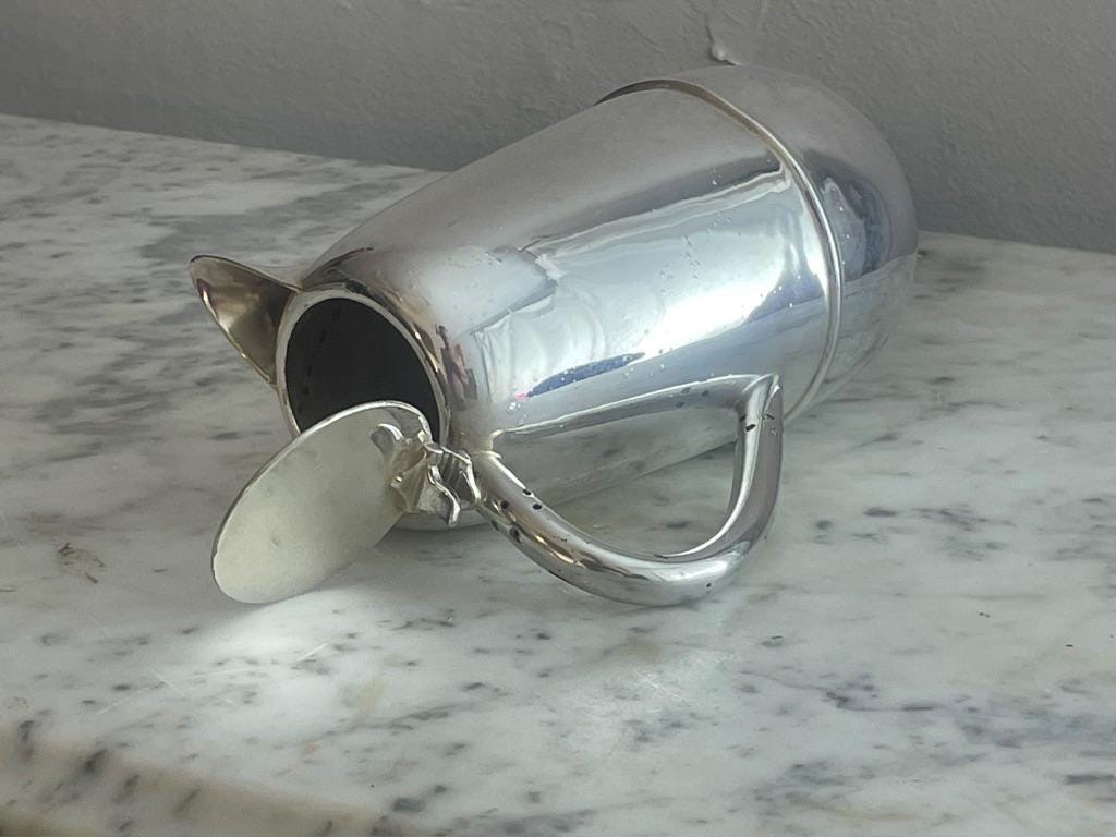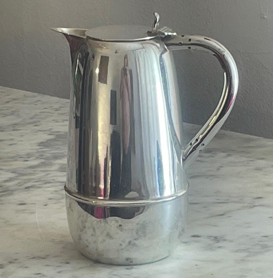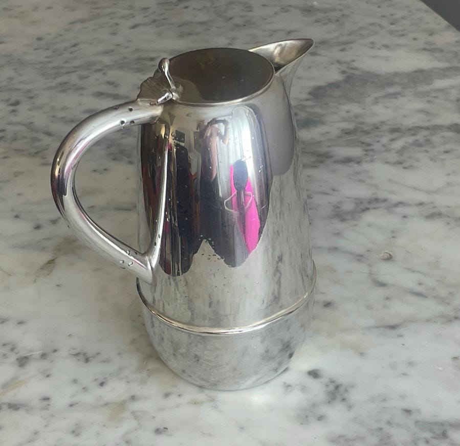 Elevate your coffee or bar service with this sleek and durable Vintage Silver Plated Carafe, a beautiful piece of Mid-Century Industrial Modern design!