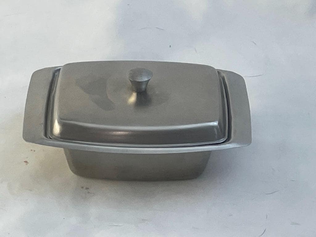 Bring a piece of timeless Scandinavian design to your kitchen or dining table with this sleek Vintage Stainless Steel Butter Dish! This piece perfectly embodies the Mid-Century Modern philosophy of functional minimalism, where design achieves elegance through absolute simplicity.